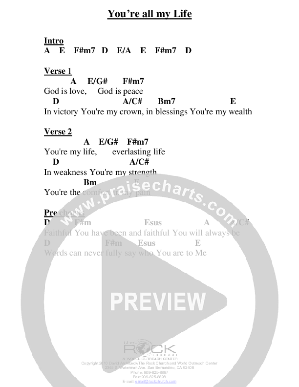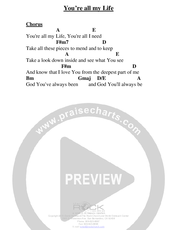 Download the PDF Chord Charts for You're All My Life by David Crowder, from the album Great Is Your Grace.