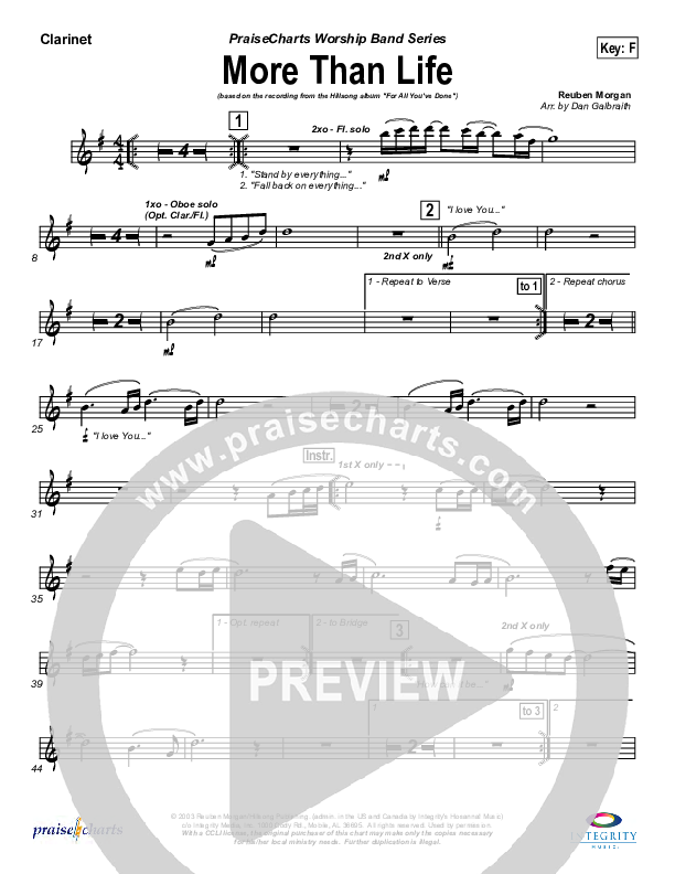 Download the Orchestration for More Than Life by Hillsong Worship, from the album For All You've Done. This song was arranged by Daniel Galbraith in the key of F, G.
