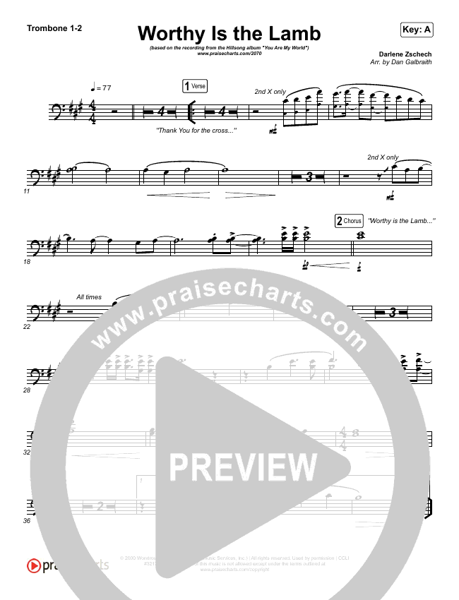 Download the Orchestration brass parts for Worthy Is The Lamb by Hillsong Worship, from the album You Are My World. This song was arranged by Daniel Galbraith in the key of A, Ab, Bb, G.