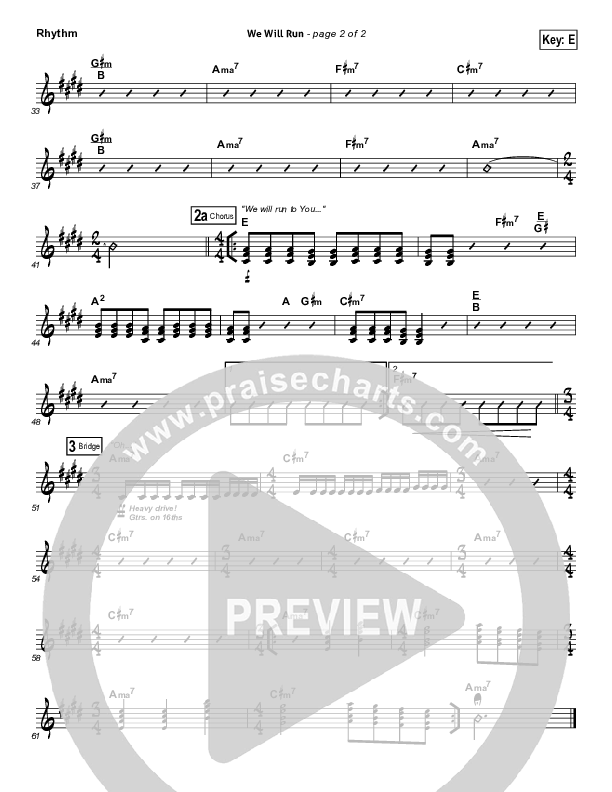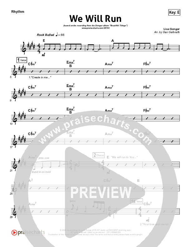 Download the Rhythm Chart for We Will Run by Gungor, from the album Beautiful Things. This song was arranged by Daniel Galbraith in the key of E, Eb.