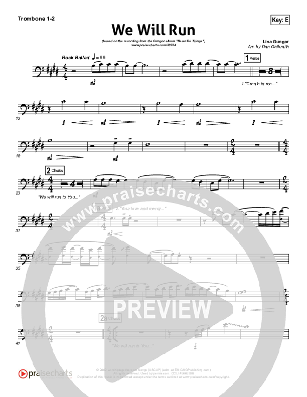 We Will Run Trombone Sheet Music PDF (Gungor)