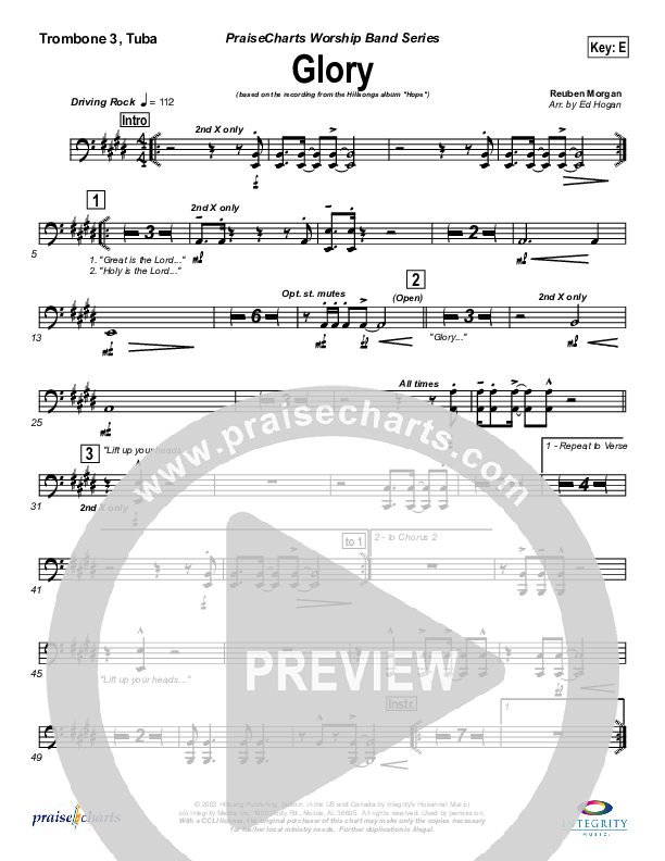 Download the Orchestration for Glory by Hillsong Worship, from the album Hope. This song was arranged by Ed Hogan in the key of E, Eb.