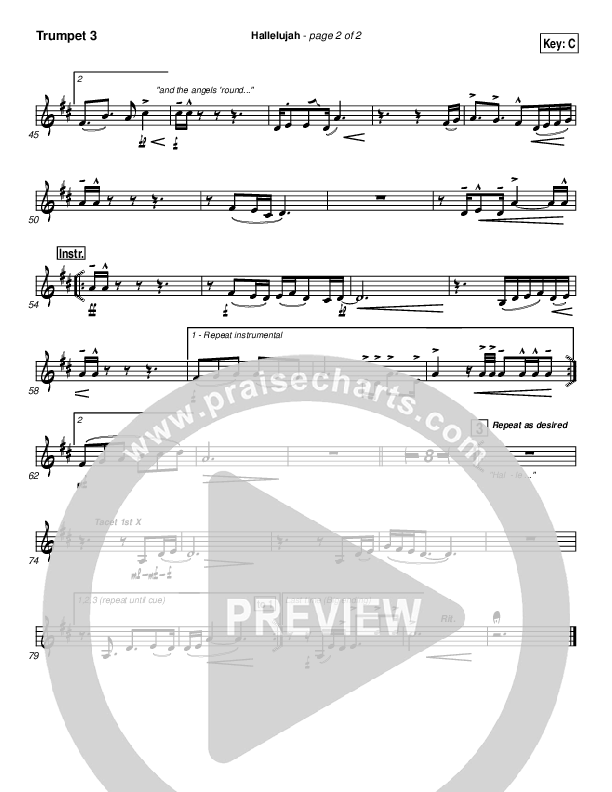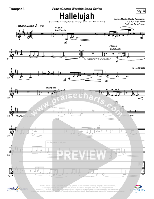 Download the Trumpet 3 sheet music for Hallelujah by Hillsong Worship, from the album For All You've Done. This song was arranged by Todd Hiller / Tom Payne in the key of Bb, C.
