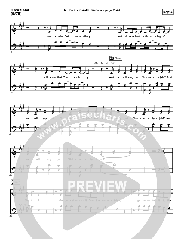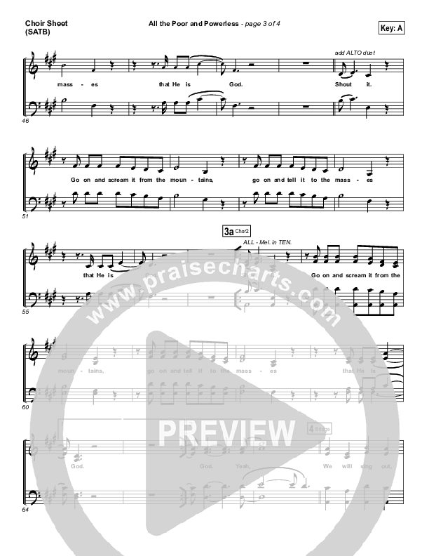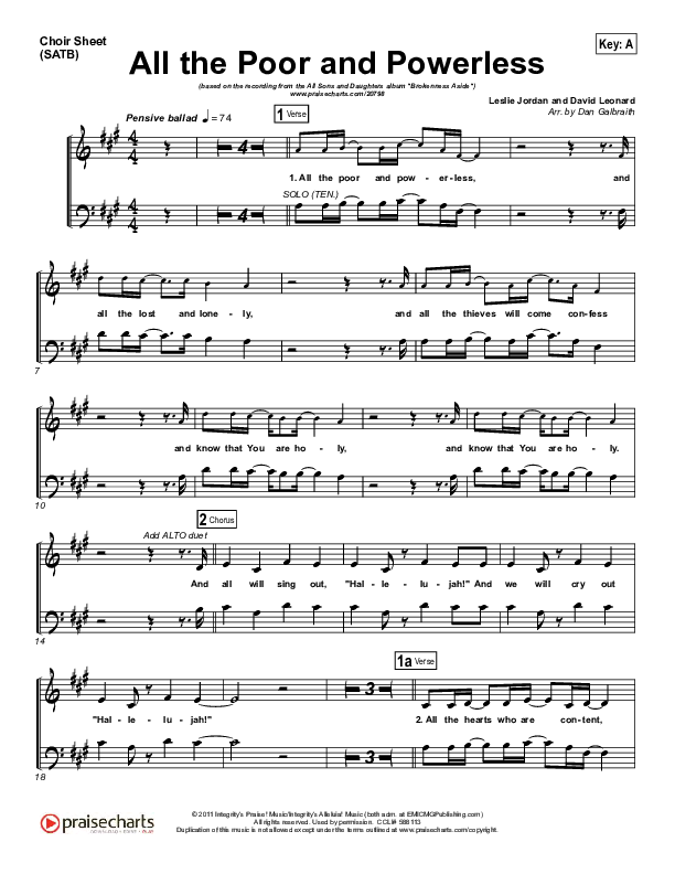 Download the Choir Sheet for All The Poor And Powerless by All Sons & Daughters, from the album Brokenness Aside EP . This song was arranged by Daniel Galbraith in the key of A, G.