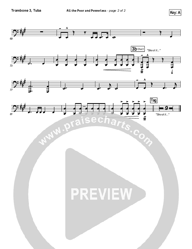 Download the Trombone 3/Tuba sheet music for All The Poor And Powerless by All Sons & Daughters, from the album Brokenness Aside EP . This song was arranged by Daniel Galbraith in the key of A, G.