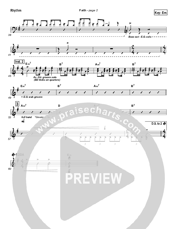 Download the Rhythm Chart for Faith by Hillsong Worship, from the album For This Cause. This song was arranged by Daniel Galbraith in the key of Em, Fm.