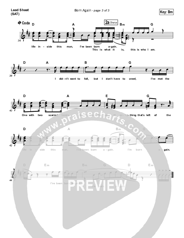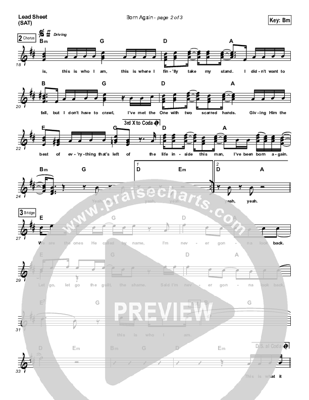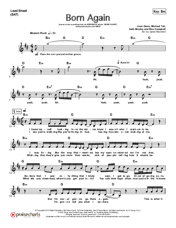 Download the sheet music for Born Again by Newsboys, from the album Born Again - Miracles Edition. This song was arranged by Jared Haschek in the key of Bm, C#m.