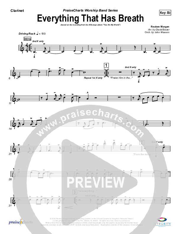 Download the Orchestration for Everything That Has Breath by Hillsong Worship, from the album You Are My World. This song was arranged by David Bauer / John Wasson in the key of Bb, C.