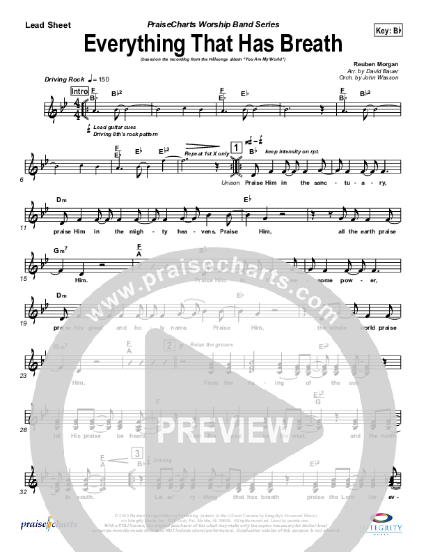 Download the sheet music for Everything That Has Breath by Hillsong Worship, from the album You Are My World. This song was arranged by David Bauer / John Wasson in the key of Bb, C.