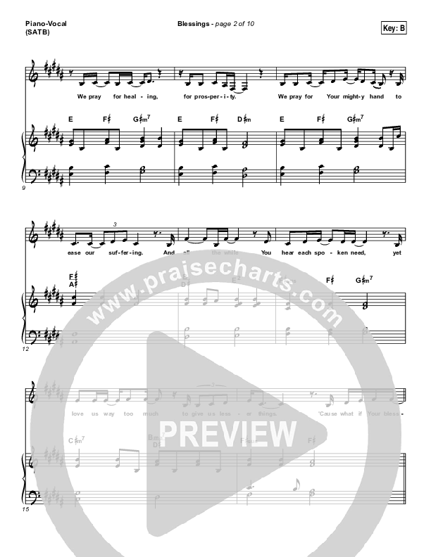 Download the sheet music for Blessings by Laura Story, from the album Blessings. This song was arranged by Grant Wall in the key of B, Bb, C.