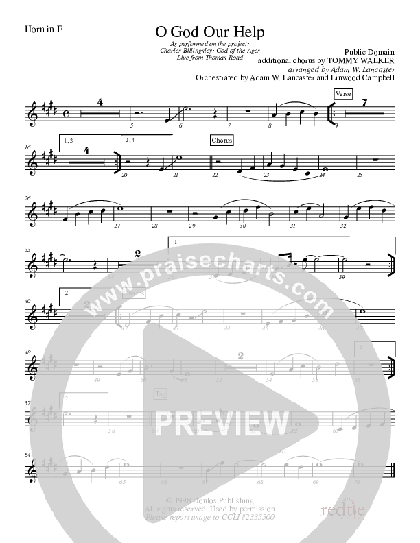 Download the Orchestration for O God Our Help In Ages Past by Charles Billingsley, from the album God Of The Ages. This song was arranged by Adam Lancaster in the key of A.