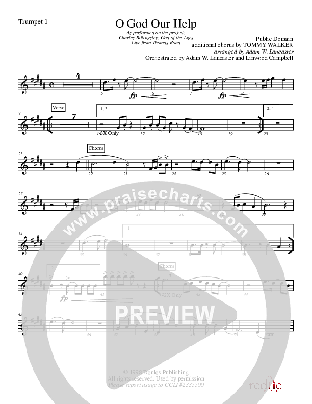 Download the Orchestration for O God Our Help In Ages Past by Charles Billingsley, from the album God Of The Ages. This song was arranged by Adam Lancaster in the key of A.