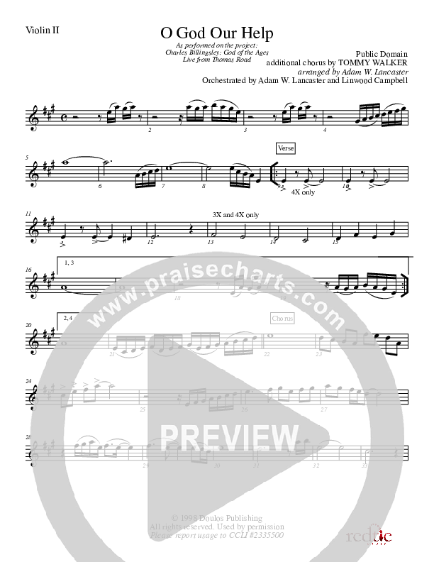 Download the Orchestration for O God Our Help In Ages Past by Charles Billingsley, from the album God Of The Ages. This song was arranged by Adam Lancaster in the key of A.