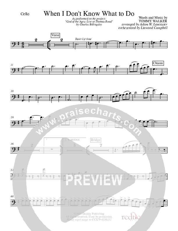 Download the Cello sheet music for When I Don't Know What To Do by Charles Billingsley, from the album God Of The Ages.