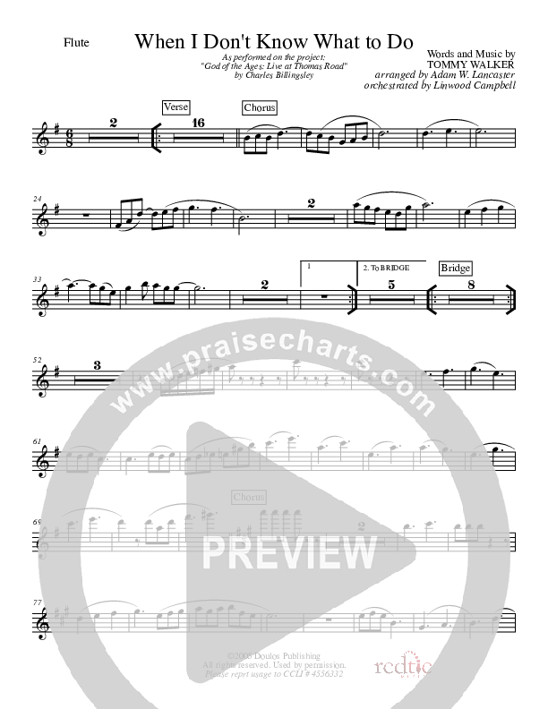 Download the Flute sheet music for When I Don't Know What To Do by Charles Billingsley, from the album God Of The Ages.