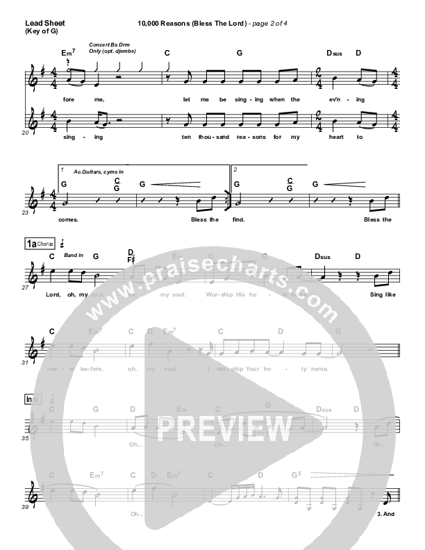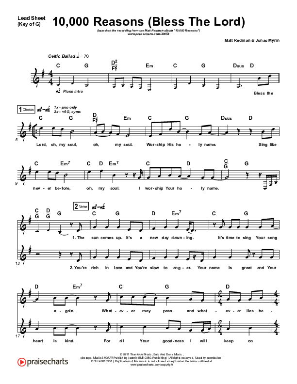 10,000 Reasons (Bless The Lord) Sheet Music PDF (Matt Redman / Passion)