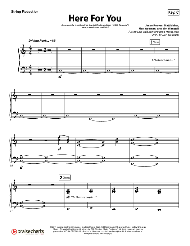 Download the Orchestration for Here For You by Matt Redman, from the album 10000 Reasons. This song was arranged by Daniel Galbraith in the key of A, Ab, Bb, C, D, G.