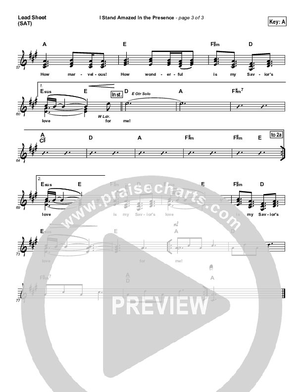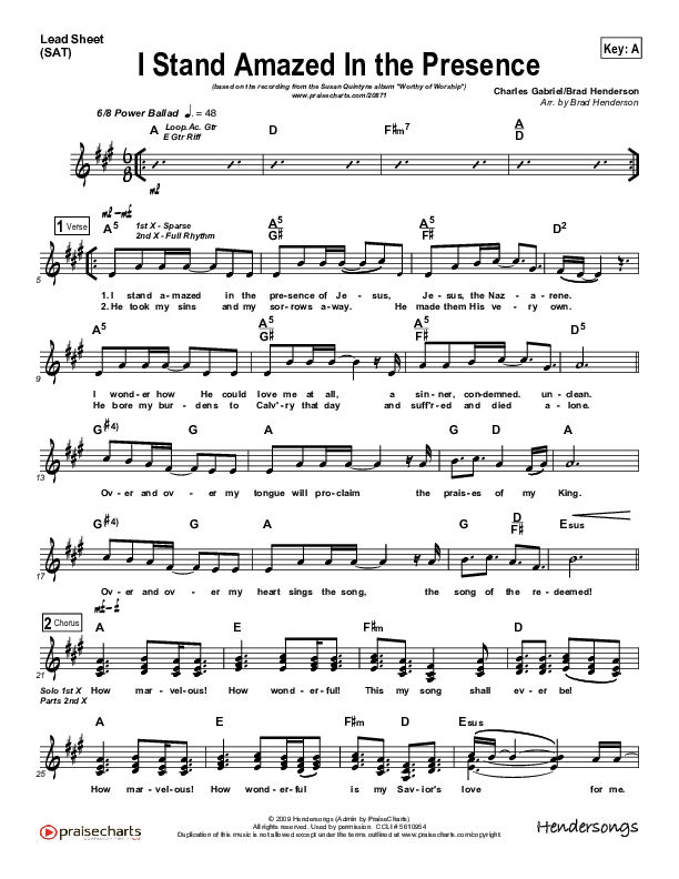 Download the sheet music for I Stand Amazed In the Presence by Susan Quintyne, from the album Worthy Of Worship. This song was arranged by Brad Henderson in the key of A, G.
