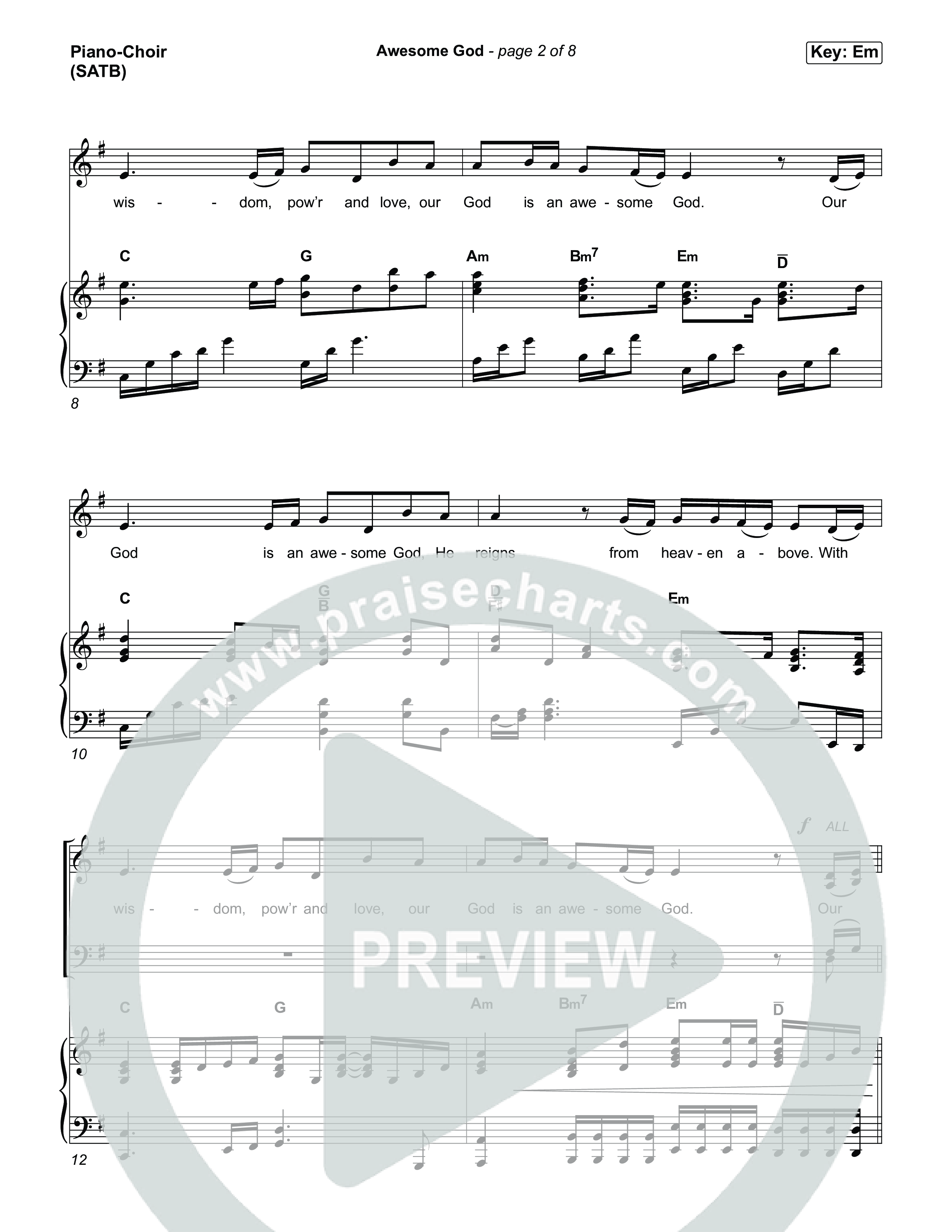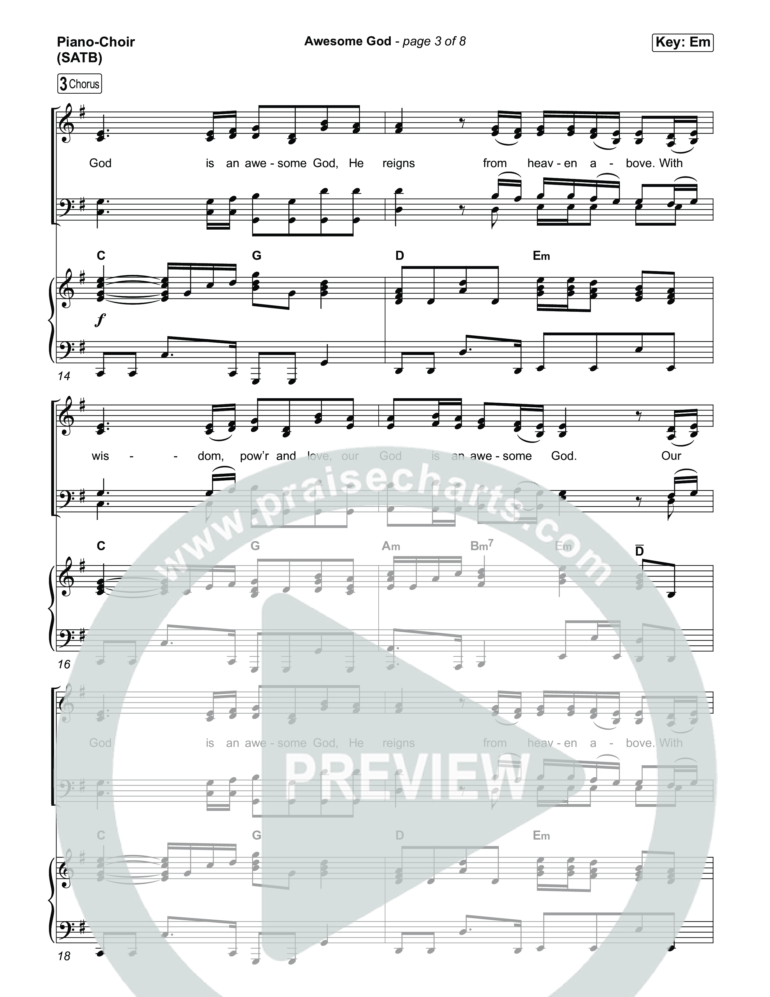 Download the sheet music for Awesome God by Michael W. Smith, from the album Worship. This song was arranged by John Wasson / Daniel Galbraith in the key of Em, Fm.