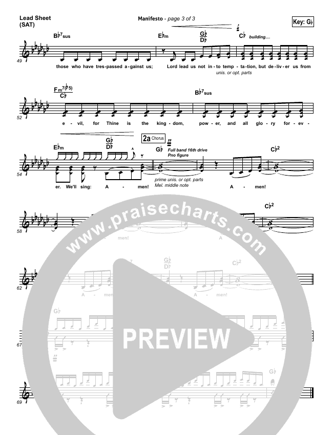 Download the sheet music for Manifesto by City Harmonic, from the album Introducing The City Harmonic. This song was arranged by Joel Mott in the key of F, Gb.