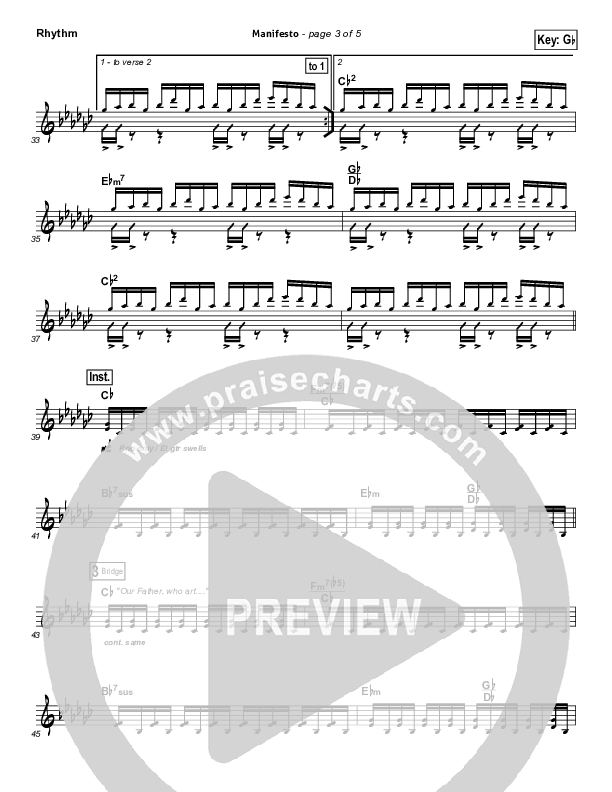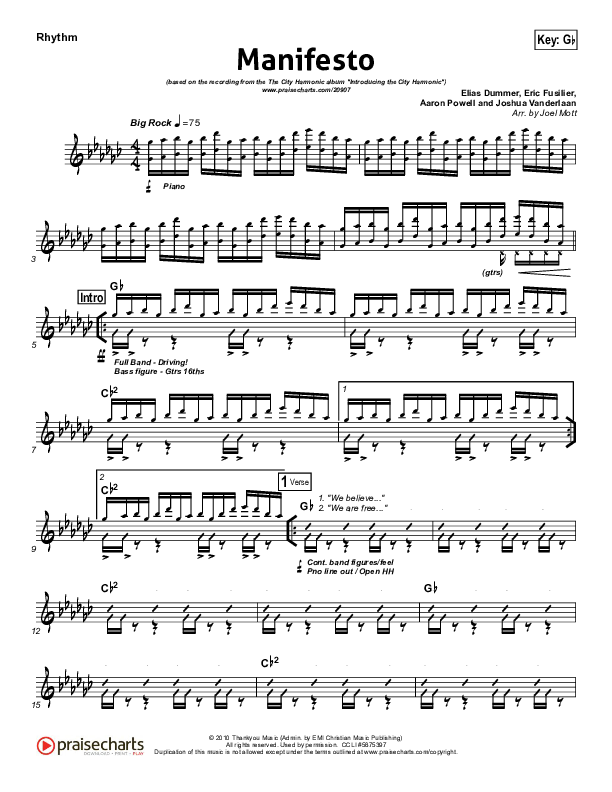 Download the Rhythm Chart for Manifesto by City Harmonic, from the album Introducing The City Harmonic. This song was arranged by Joel Mott in the key of F, Gb.