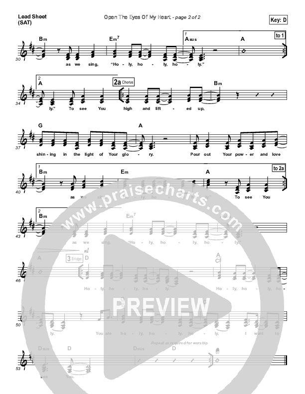 Download the sheet music for Open The Eyes Of My Heart by Michael W. Smith, from the album Worship. This song was arranged by Jared Haschek in the key of D.