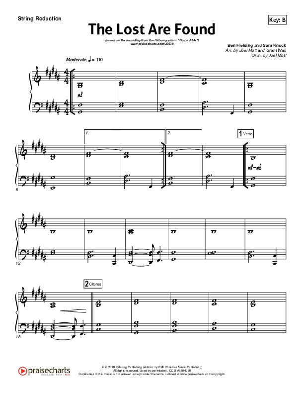 Download the Orchestration for The Lost Are Found by Hillsong Worship, from the album God Is Able. This song was arranged by Joel Mott / Grant Wall in the key of B, Bb.