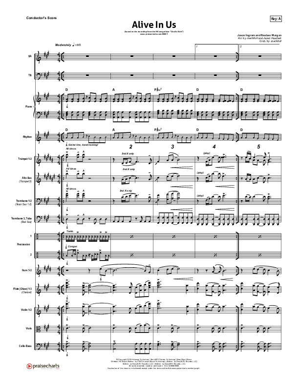 Download the Orchestration for Alive In Us by Hillsong Worship, from the album God Is Able. This song was arranged by Joel Mott / Jared Haschek in the key of A, G.