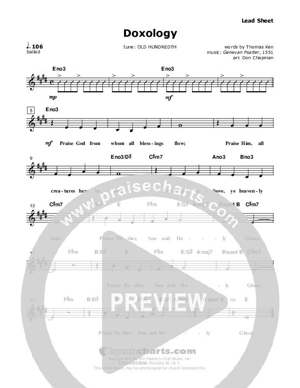 Download the Orchestration for Doxology by Don Chapman, from the album HymnCharts. This song was arranged by Don Chapman in the key of E.