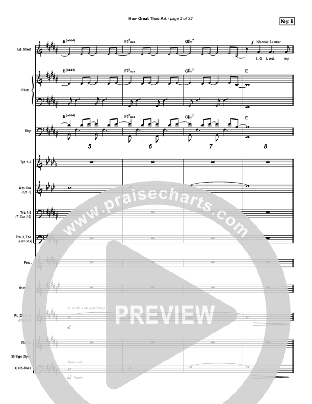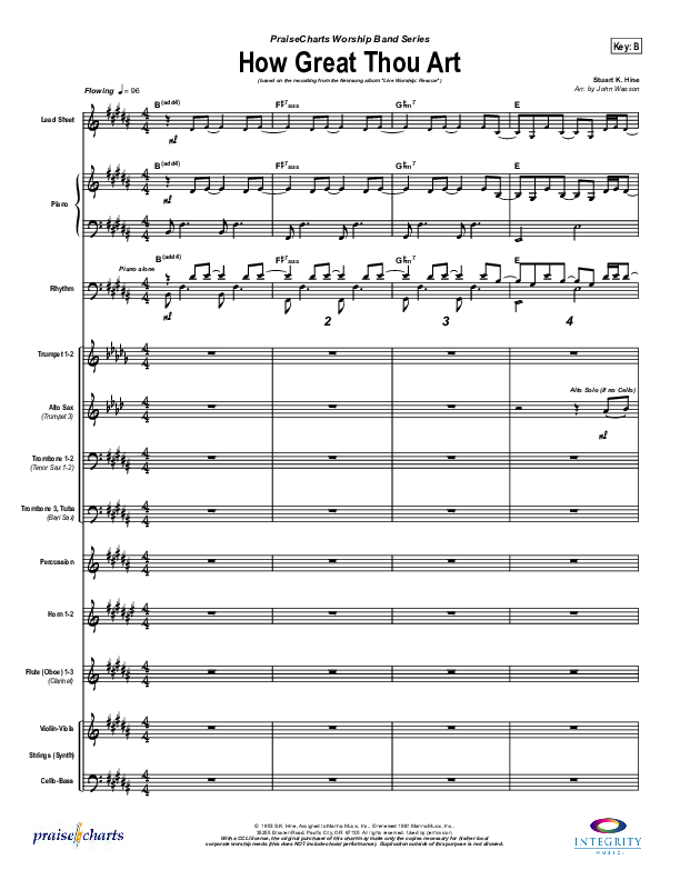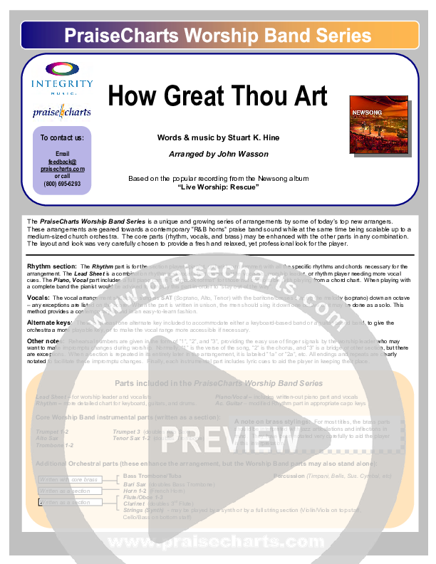 Download the Orchestration for How Great Thou Art by Newsong, from the album Rescue. This song was arranged by John Wasson in the key of B, Bb.