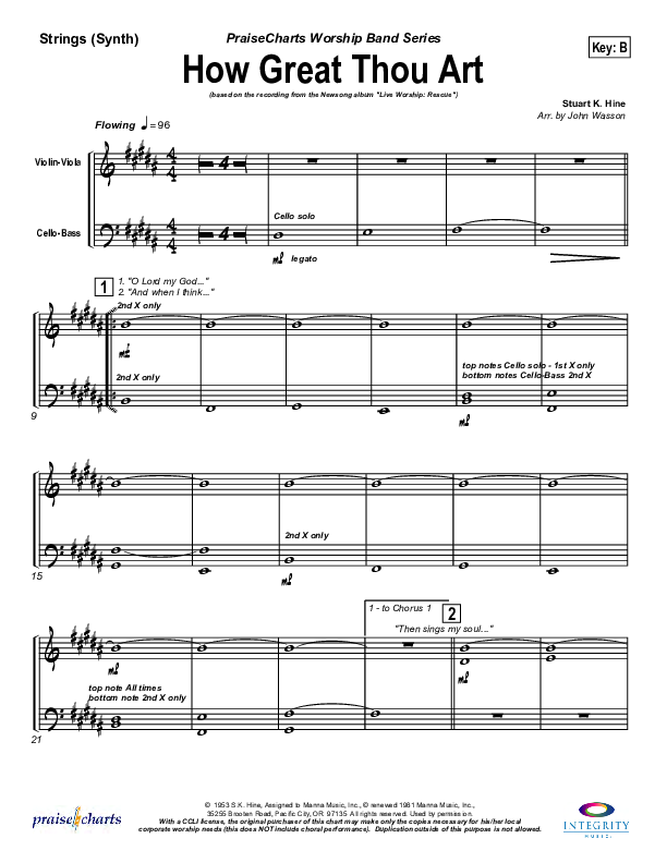 Download the Orchestration for How Great Thou Art by Newsong, from the album Rescue. This song was arranged by John Wasson in the key of B, Bb.