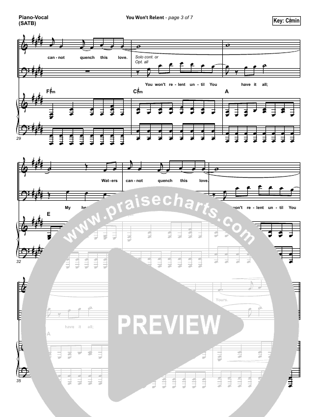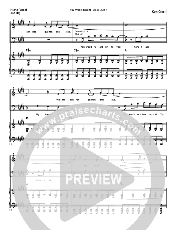 Download the sheet music for You Won't Relent by Misty Edwards, from the album Relentless. This song was arranged by Joel Mott / Lee Marcum in the key of C#m, Cm.