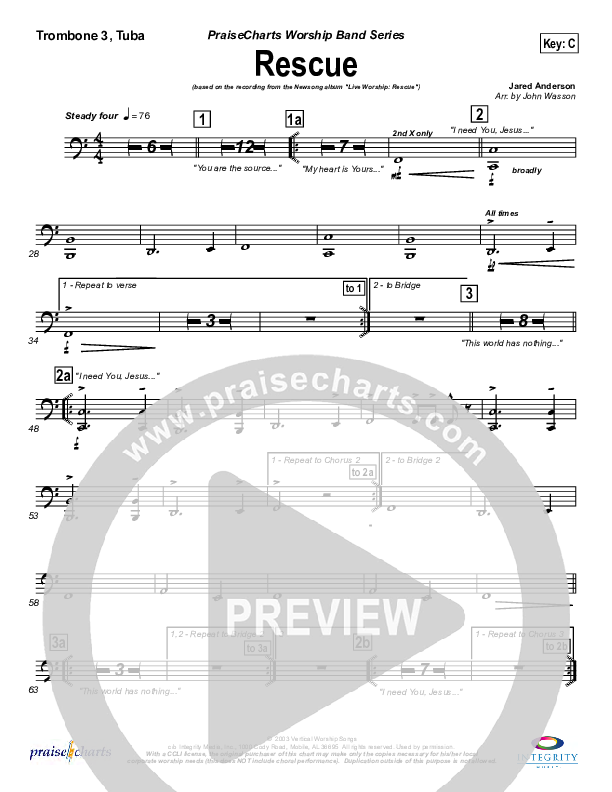 Rescue Trombone/Tuba Sheet Music PDF (Newsong)