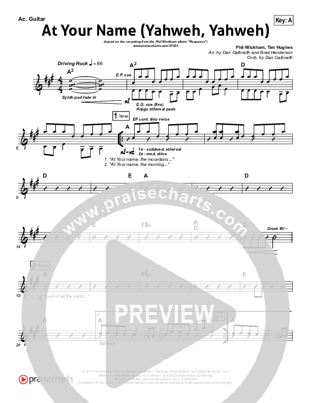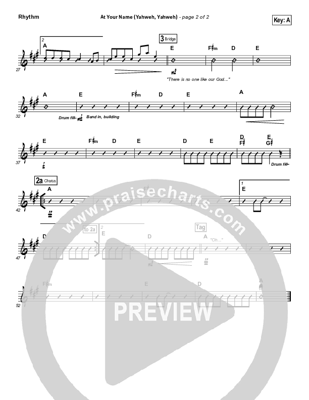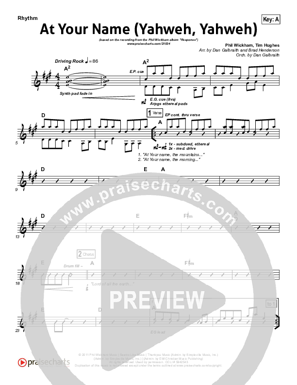Download the Rhythm Chart for At Your Name by Phil Wickham, from the album Response. This song was arranged by Daniel Galbraith / Brad Henderson in the key of A, G.