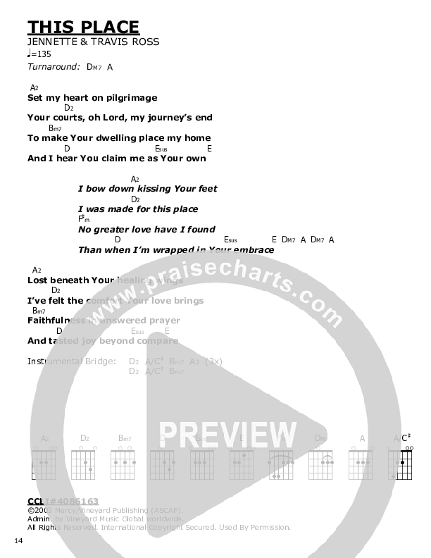 Download the PDF Chord Charts for This Place, from the album Dwell.