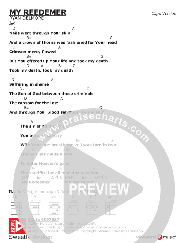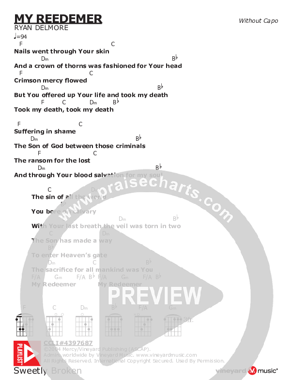 Download the PDF Chord Charts for My Redeemer by Ryan Delmore, from the album Sweetly Broken.