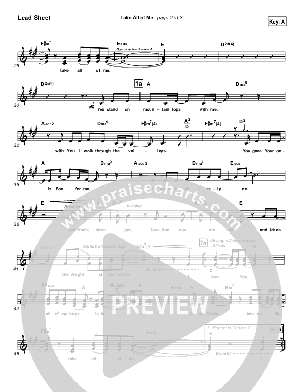 Download the Orchestration for Take All Of Me by Hillsong Worship, from the album For All You've Done. This song was arranged by Todd Hiller / John Wasson in the key of A, Ab, G.