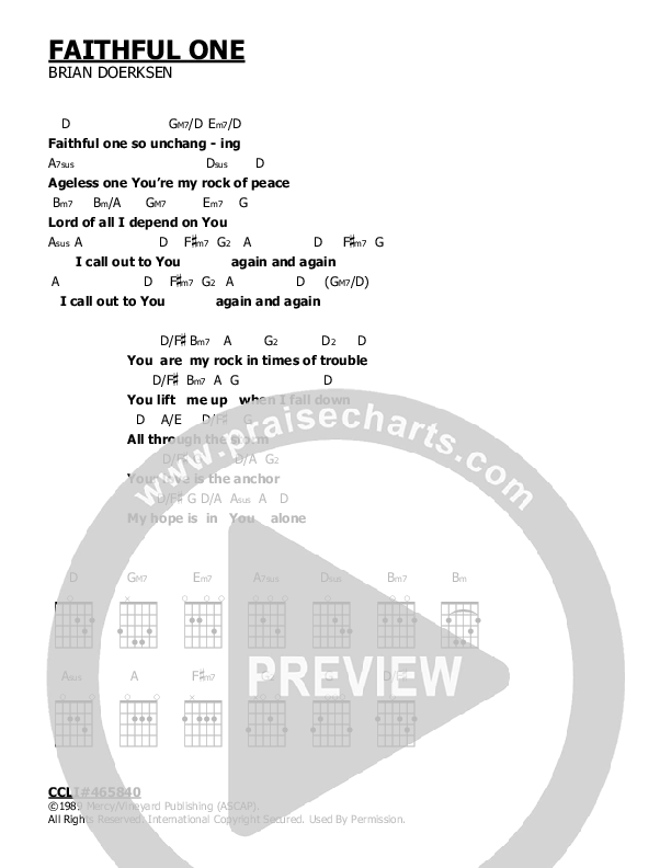 Download the PDF Chord Charts for Faithful One by Brian Doerksen, from the album Change My Heart Oh God: Season Of Glory.