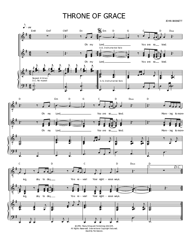 Throne Of Grace Sheet Music PDF (Vineyard Worship)