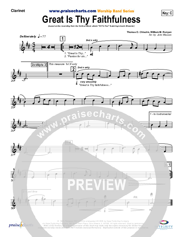 Download the Orchestration for Great Is Thy Faithfulness by Lincoln Brewster, from the album All To You. This song was arranged by John Wasson in the key of A, Bb, C.