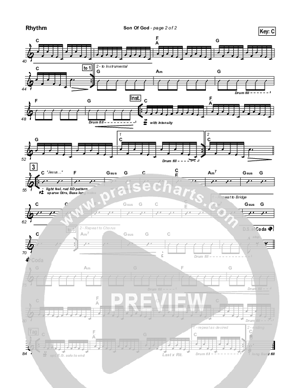 Download the Rhythm Chart for Son Of God by Hillsong Worship, from the album All To You. This song was arranged by John Wasson in the key of D.