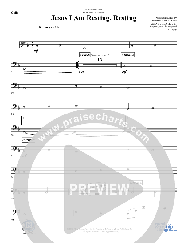 Jesus I Am Resting Resting Cello Sheet Music PDF (G3 Worship)
