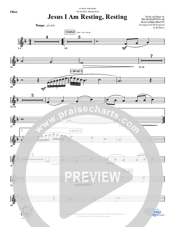 Jesus I Am Resting Resting Oboe Sheet Music PDF (G3 Worship)