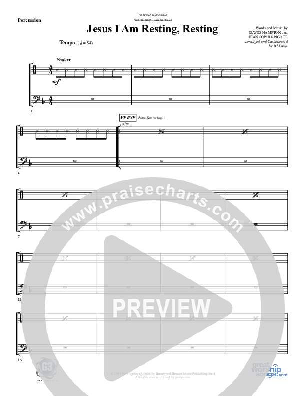 Jesus I Am Resting Resting Percussion Sheet Music PDF (G3 Worship)