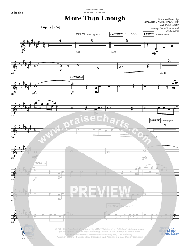Download the AltoSax sheet music for More Than Enough by G3 Worship, from the album Tell The Story.