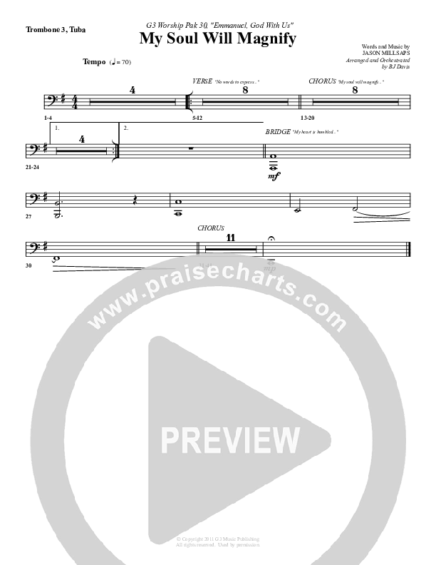 Download the Trombone 3/Tuba sheet music for My Soul Will Magnify by G3 Worship, from the album Emmanuel.