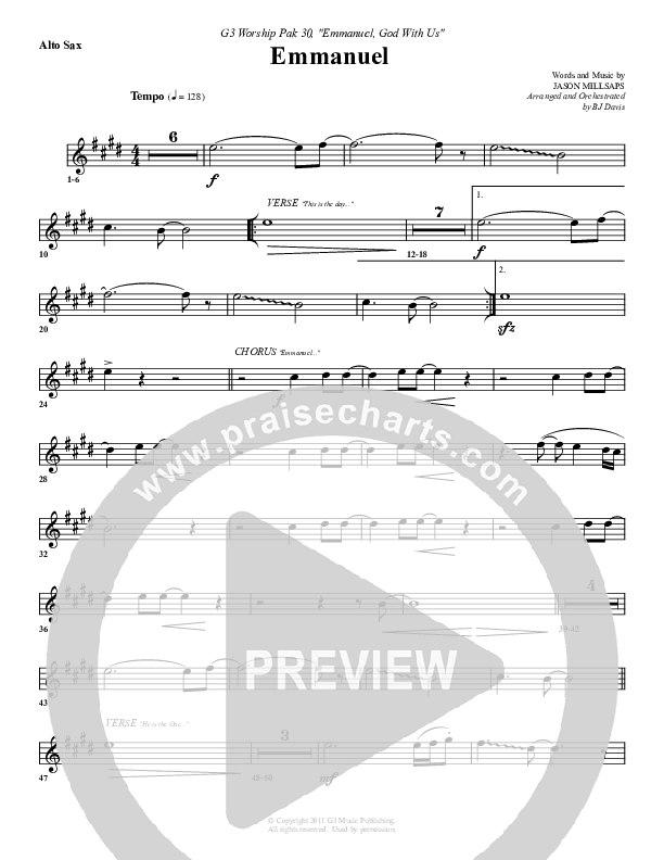 Download the AltoSax sheet music for Emmanuel by G3 Worship, from the album Emmanuel.