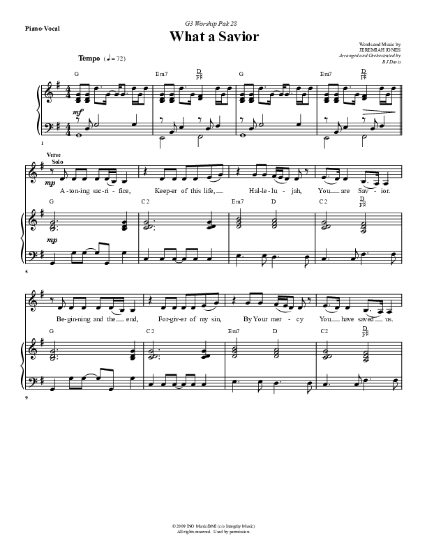 Download the sheet music for What A Savior by G3 Worship, from the album Higher Ground.