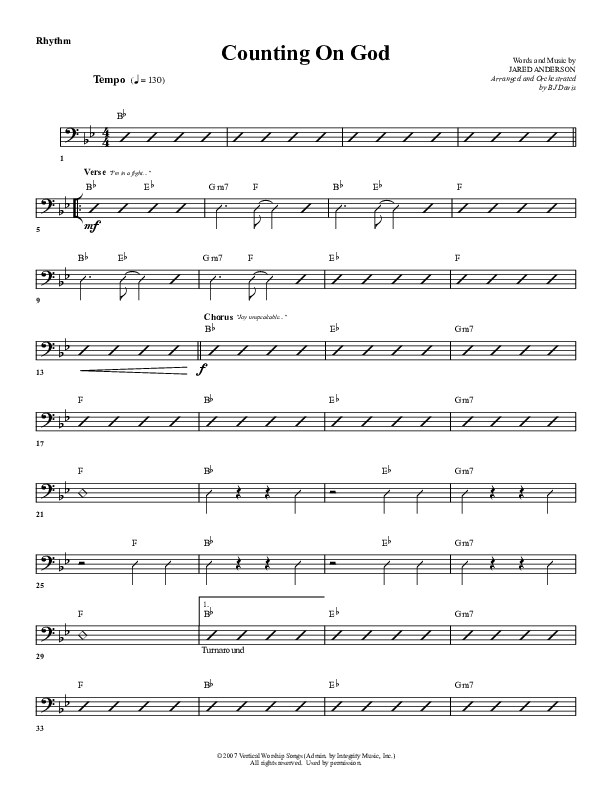 Download the Rhythm Chart for Counting on God by G3 Worship, from the album This Is My Story.