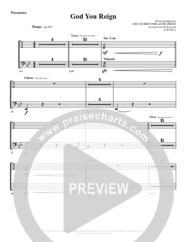God You Reign Percussion Sheet Music PDF (G3 Worship)